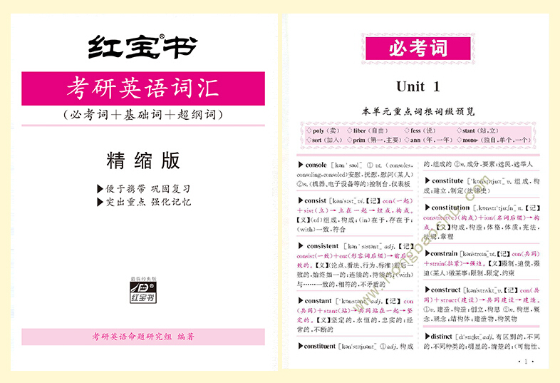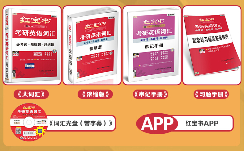 【红宝书】考研英语词汇(必考词+基础词+超纲词)套装共四本,大词汇、精缩版、串记手册、习题册。